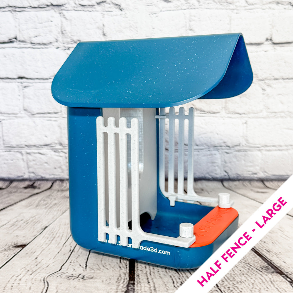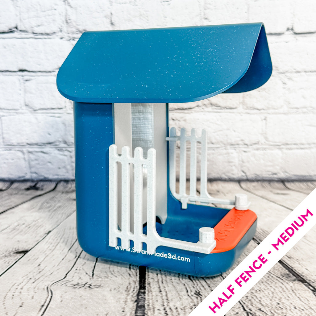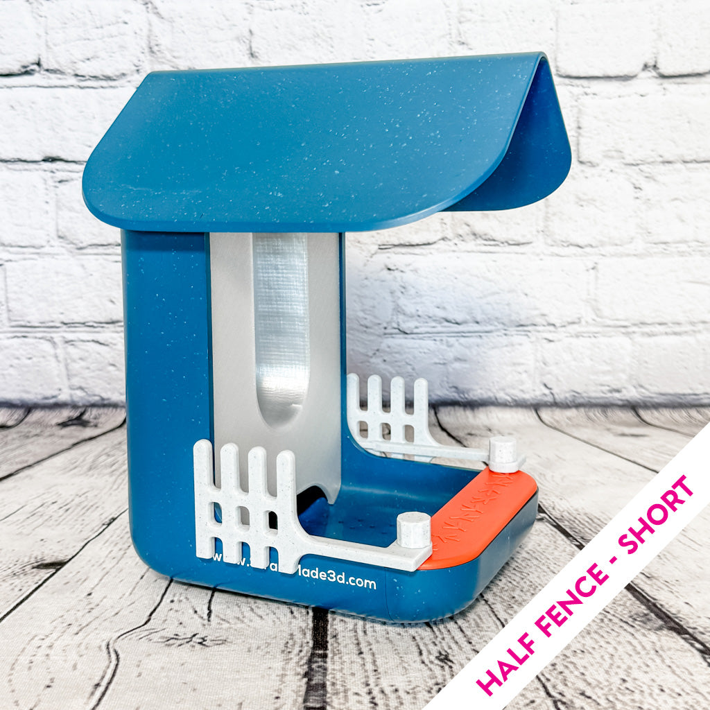 The half size fence rail version provides additional clearance for our add-on items such as the Water Fountain and Suet Cup