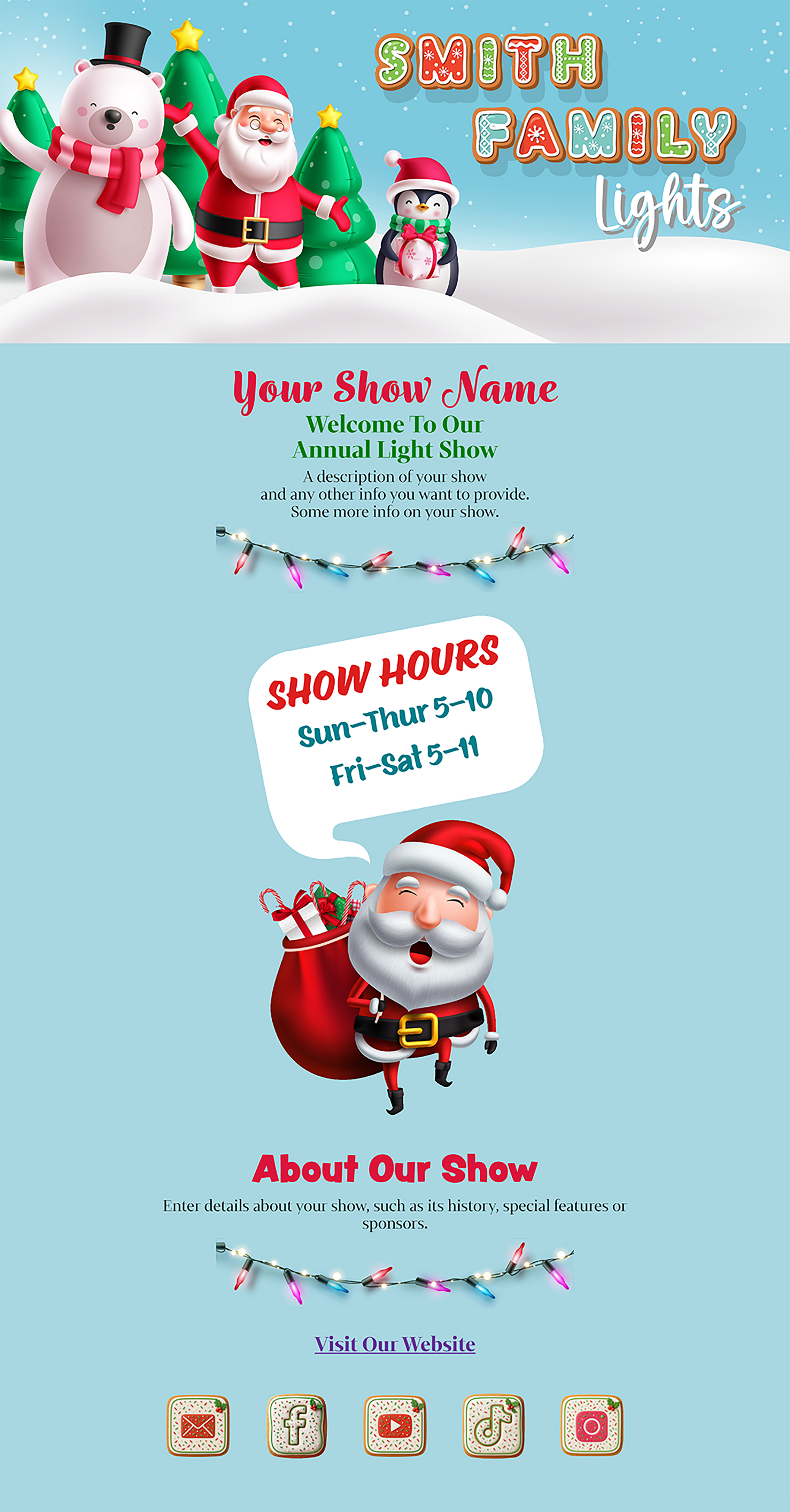 Pre-configured HTML code for use with Remote Falcon. Use the provided embeded images to display your show hours and user instructions by editing them in MS Paint or Apple Preview.