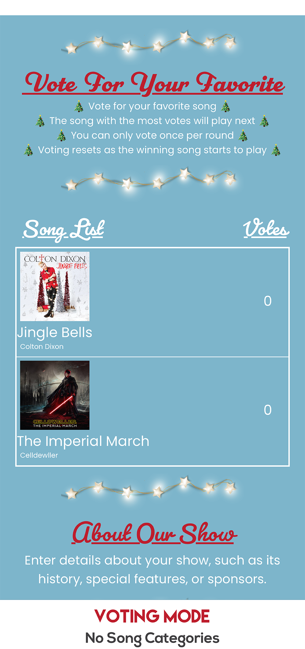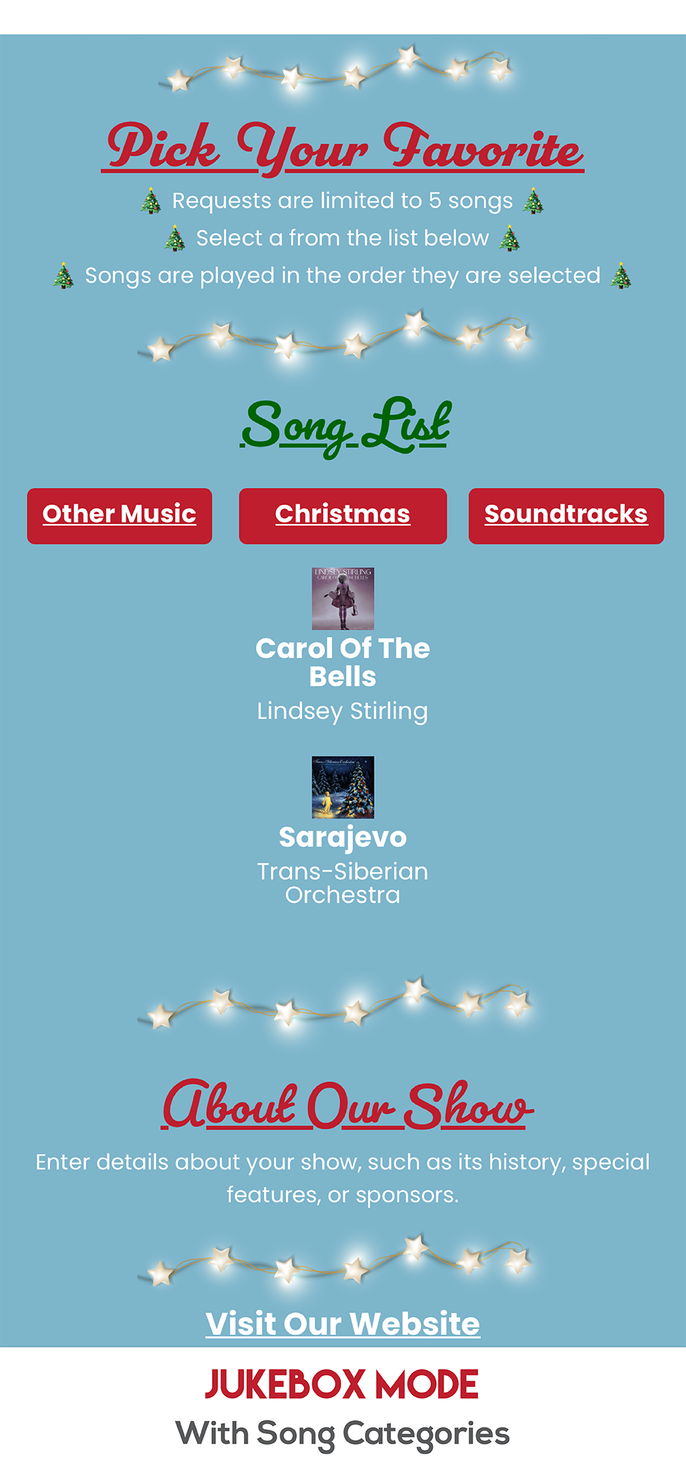 Elevate your Remote Falcon site to the next level with our pre-configured template designed for a mobile-friendly viewing experience.
